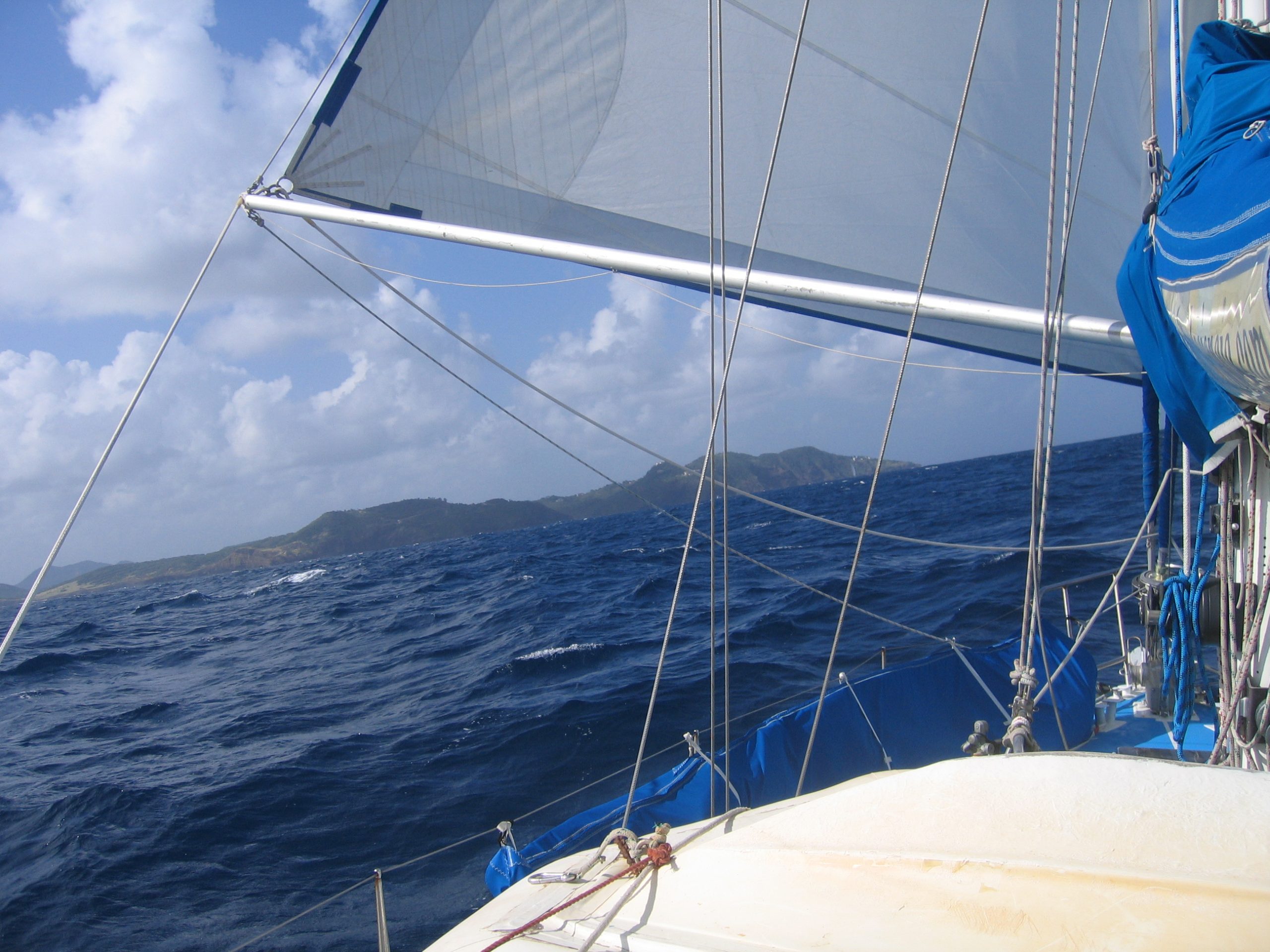 He dormido a ratos controlando la velocidad y el rumbo para llegar puntual a las 12:00 horas locales del mediodía. Amanece un día espléndido de 15 nudos de viento. A las 07:49 (hora local) veo ¡TIERRA! Hago las tareas rutinarias pero